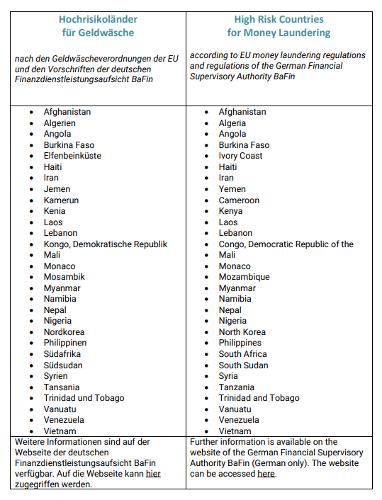 A “Source of Funds” confirmation is required only if you live in, or transfer your blocked amount in full or in part from a country that is considered "high-risk" per the EU money laundering regulations or the regulations of the German Financial Supervisory Authority (BaFin).